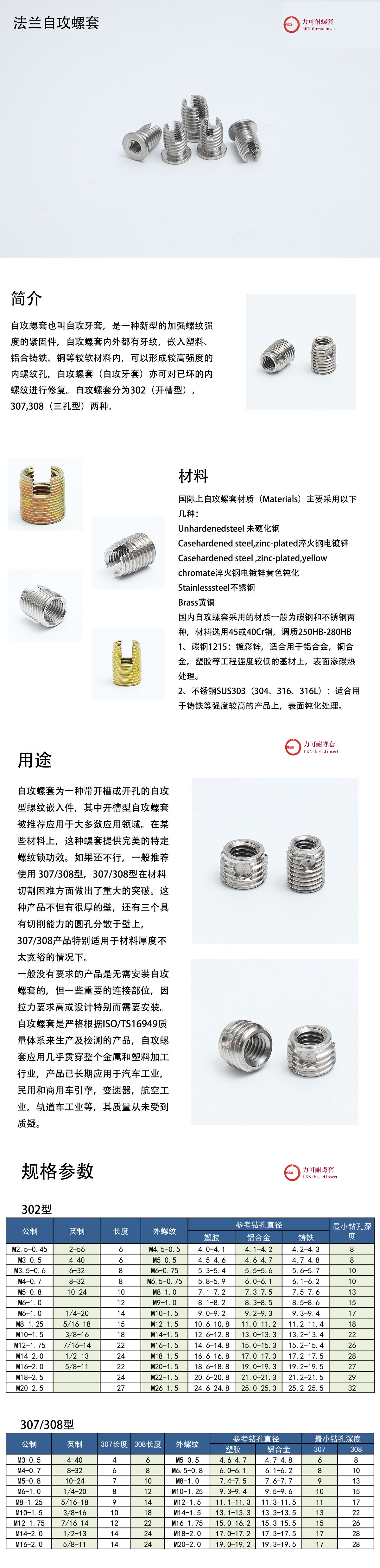 (2)需求产品规格及参数,主要包括:公称直径、螺距、圈数(或者客户待安装螺纹护套底孔之有效螺纹深度) ;